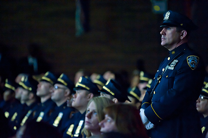 030215-NYPD-PROMOTION-DM-8 Newly promoted NYPD officers watching film at Promotion Ceremony, One Police Plaza, NYC.