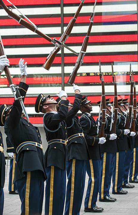 061215-ARMY240-DM-8 Members of the U.S. ARMY Drill Team performing at scene of 240th ARMY Birthday Celebration in Times Square, NYC.