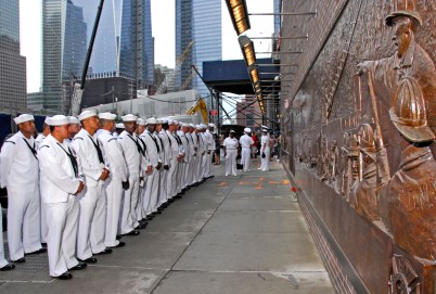 081811-WTCNAVY-DM-1.jpg Chief Petty Officer’s from Naval Air Station Oceana Virginia Beach, VA, honoring the ‘Firefighter’s 10 House Memorial’ on side of Engine 10 Ladder, at WTC site, Greenwich between Liberty and Cedar, NYC.