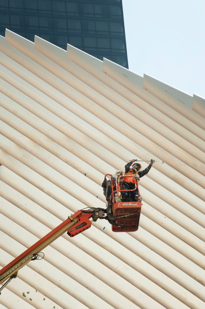 082515-WTC-TRANSITHUB-DM-1 Workers painting the exterior of the World Trade Center Transportation Hub, designed by Santiago Calatrava, NYC.