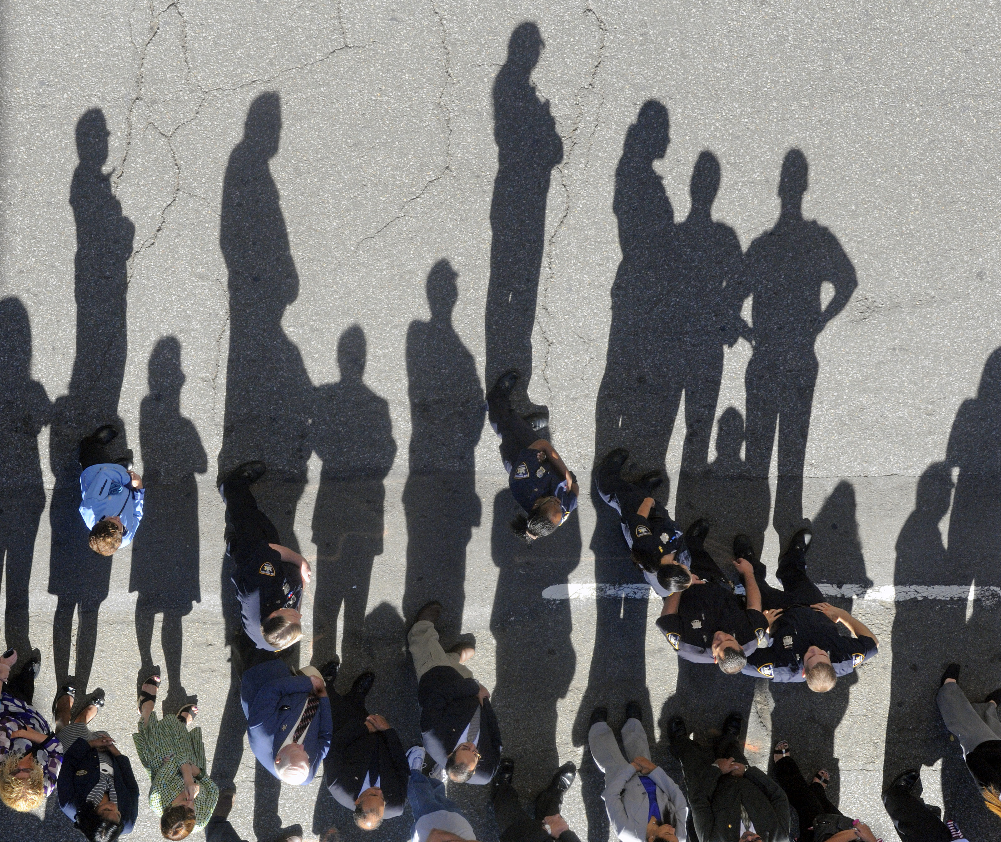 091112-911-DM-3.jpg People and officers at ceremony honoring 3 court officers who died during 9-11 tragedy, in front of 111 Centre Street, NYC.