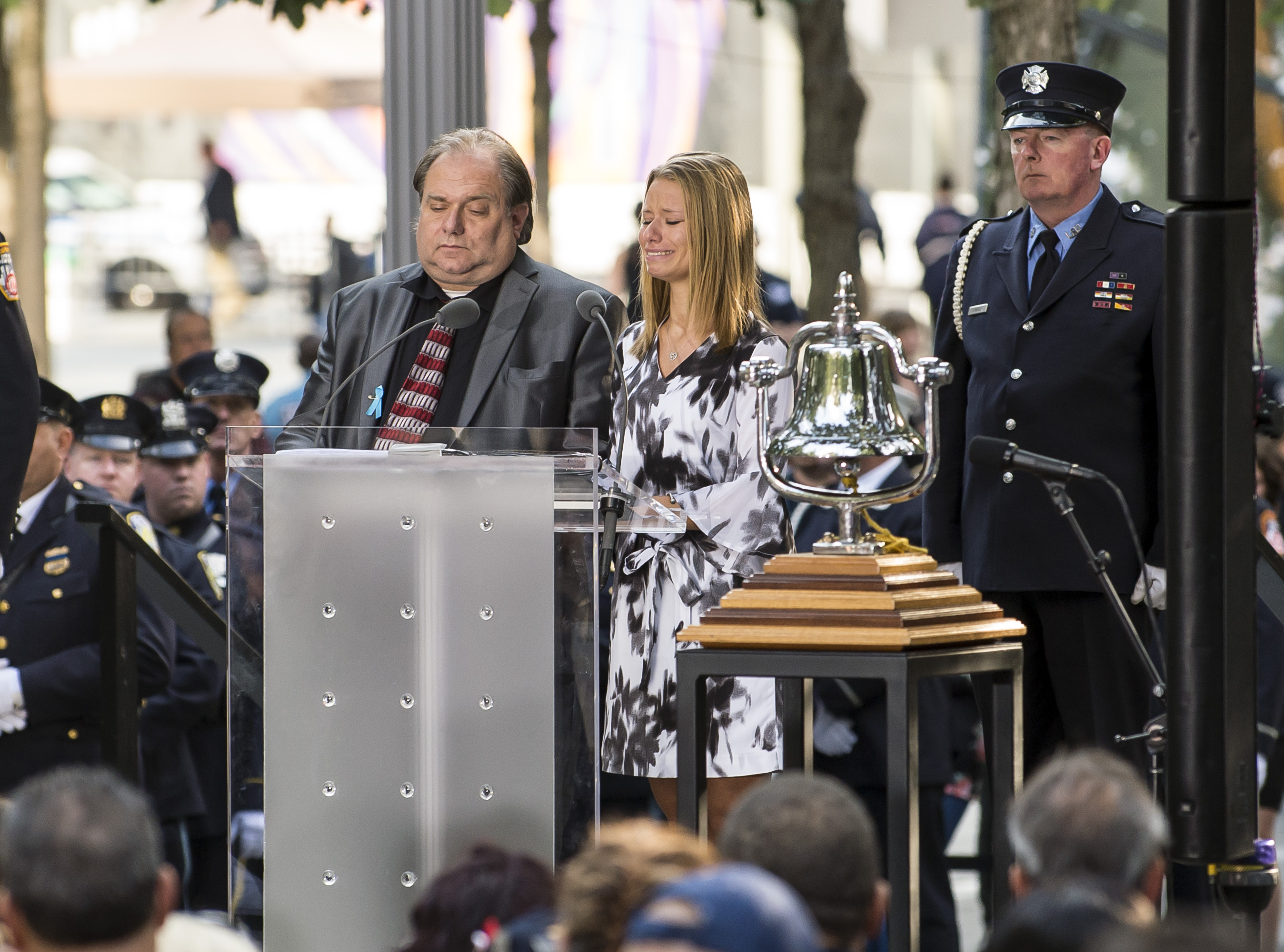 091117-911-MEMORIAL-DM-24 Woman getting emotional during reading of names, at 16th World Trade Center Memorial Service, NYC.