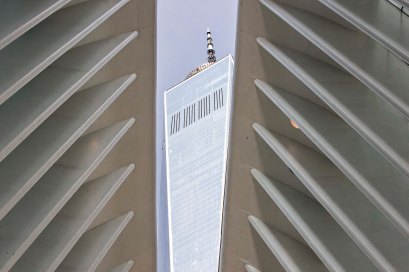 091117-911-MEMORIAL-DM-29 The opening of the Oculus showing Freedom Tower (The Wedge of Light – Day of Remembrance) on day of 16th World Trade Center Memorial Service, NYC.