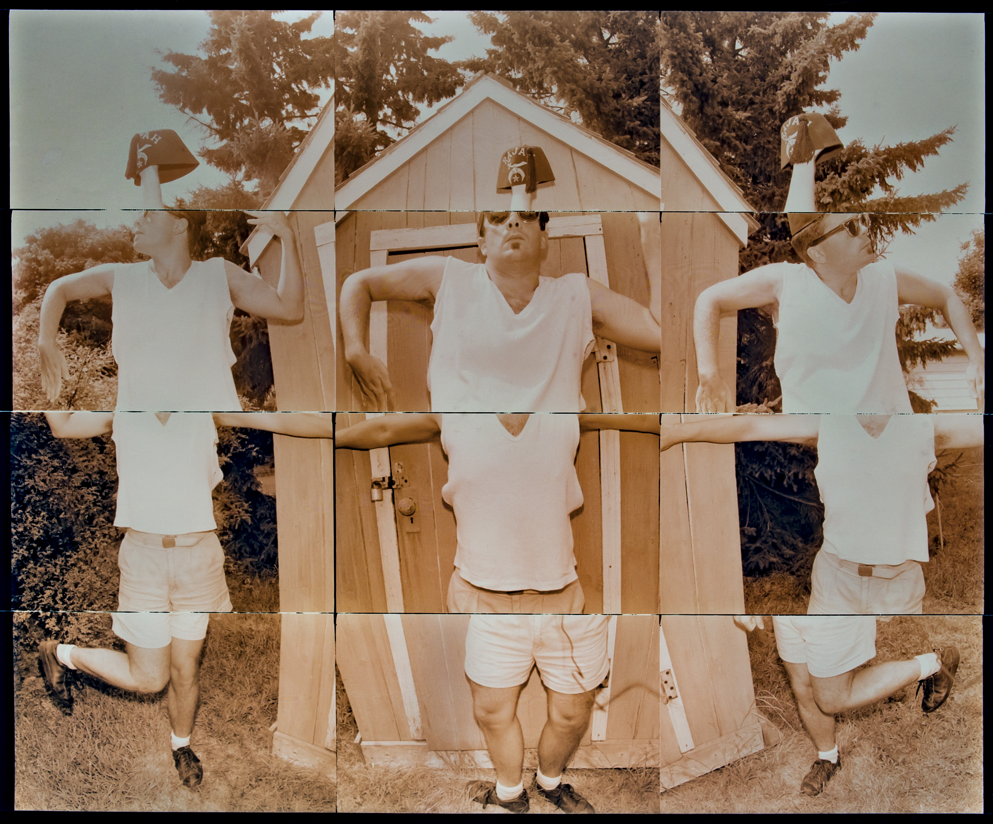 GREENPORT SKETCH 1986 is an analog photo collage sketch made from Ilford XP1 film.  The strips of film are straight out of the camera, taped onto a glass negative carrier, and enlarged onto color paper. Exposed with my trusty Olympus OM-1, which I had specially filed out by the esteemed Marty Forscher of Professional Camera Repair in NYC, to eliminate the spacing in between frames.