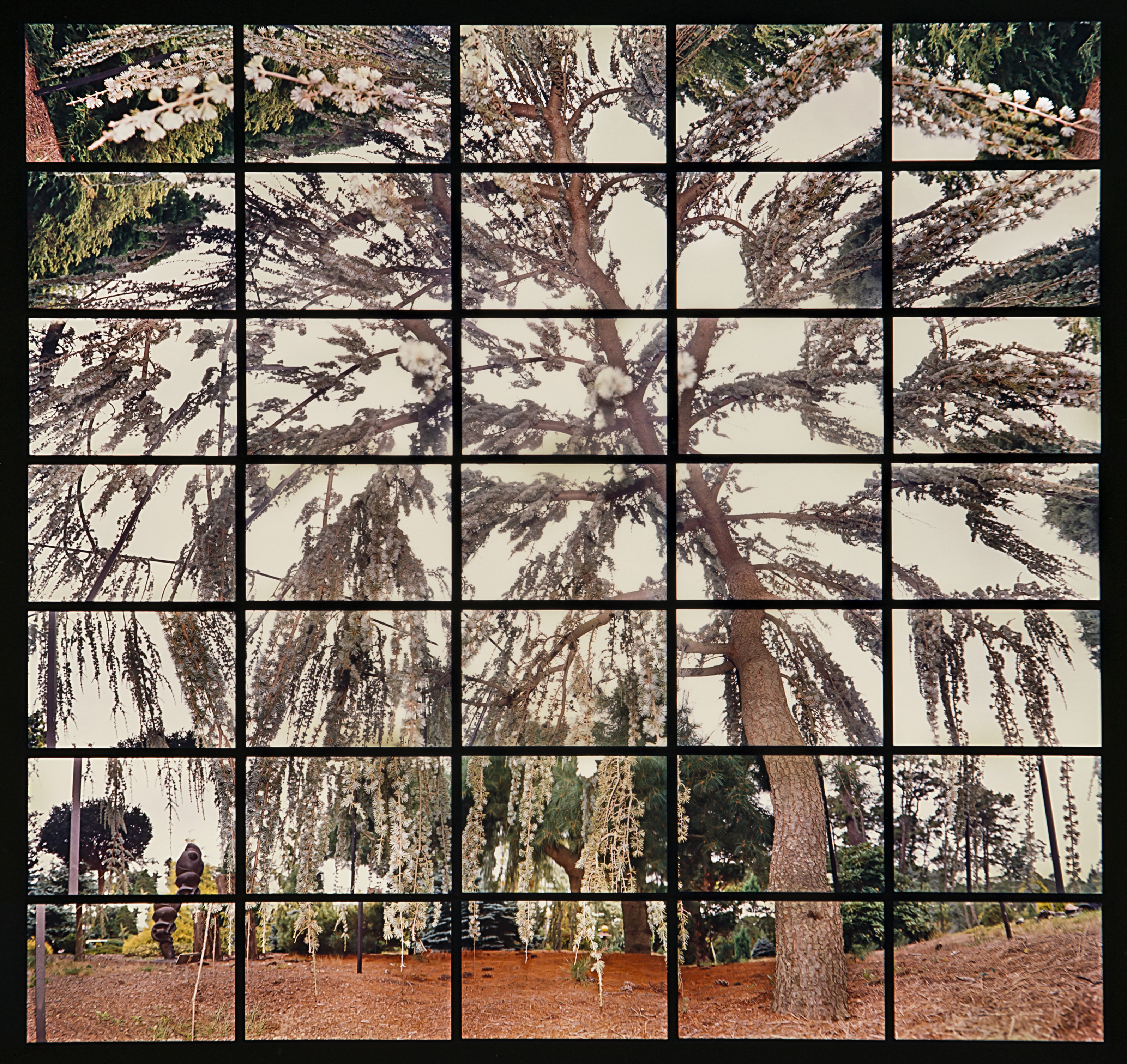 ATLAS 1987 is an analog photo collage created as a composite panoramic contact print from color negatives, printed on chromogenic paper. It is a picture of an Atlas Weeping Cedar, one of the many unusual trees on the (then) East Hampton estate of Alfonso Ossorio.