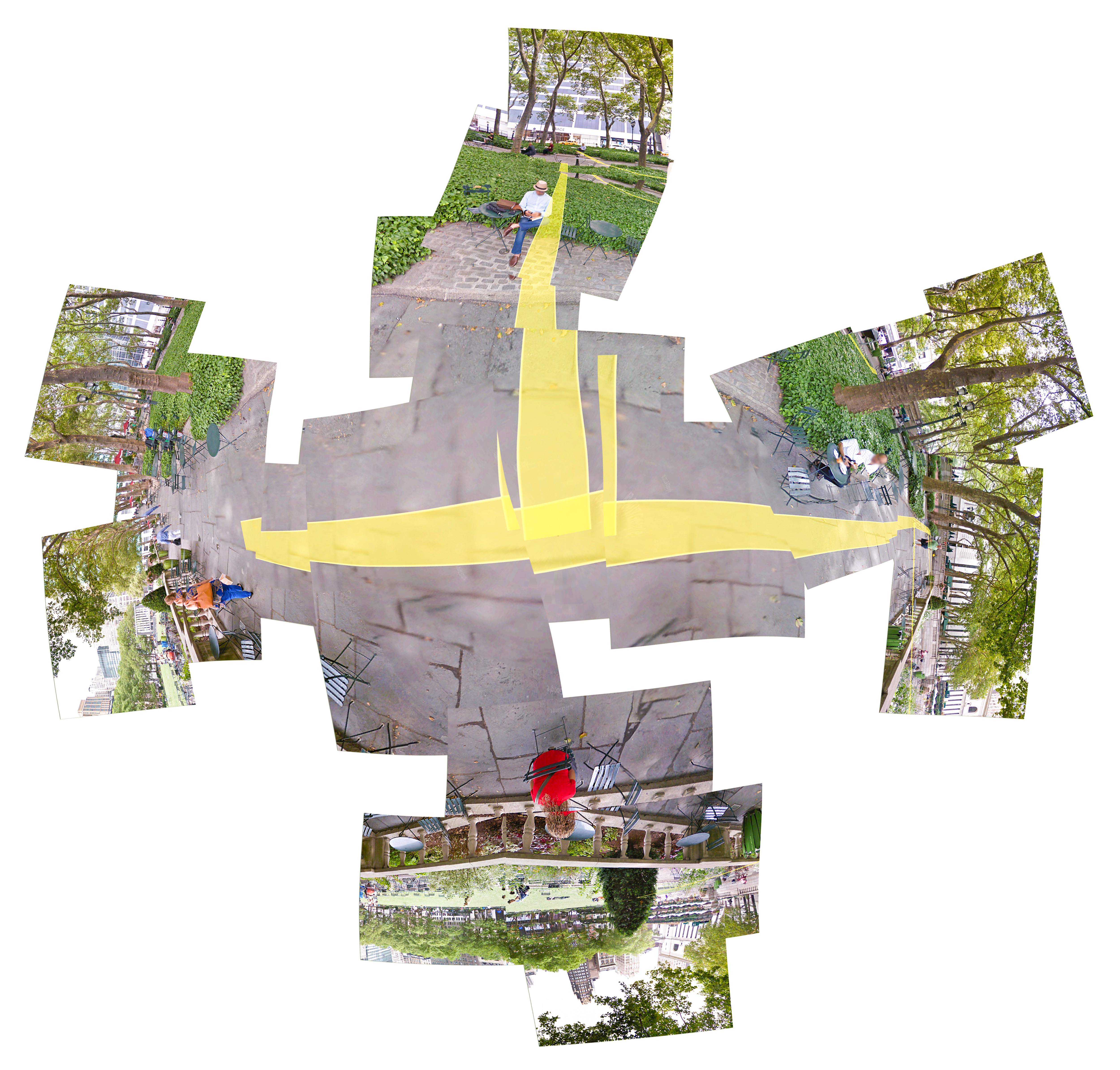 BRYANT SKETCH 2018 is a digital photo collage sketch created from imagery taken from Google Street View software in the vicinity of Bryant Park, NYC.