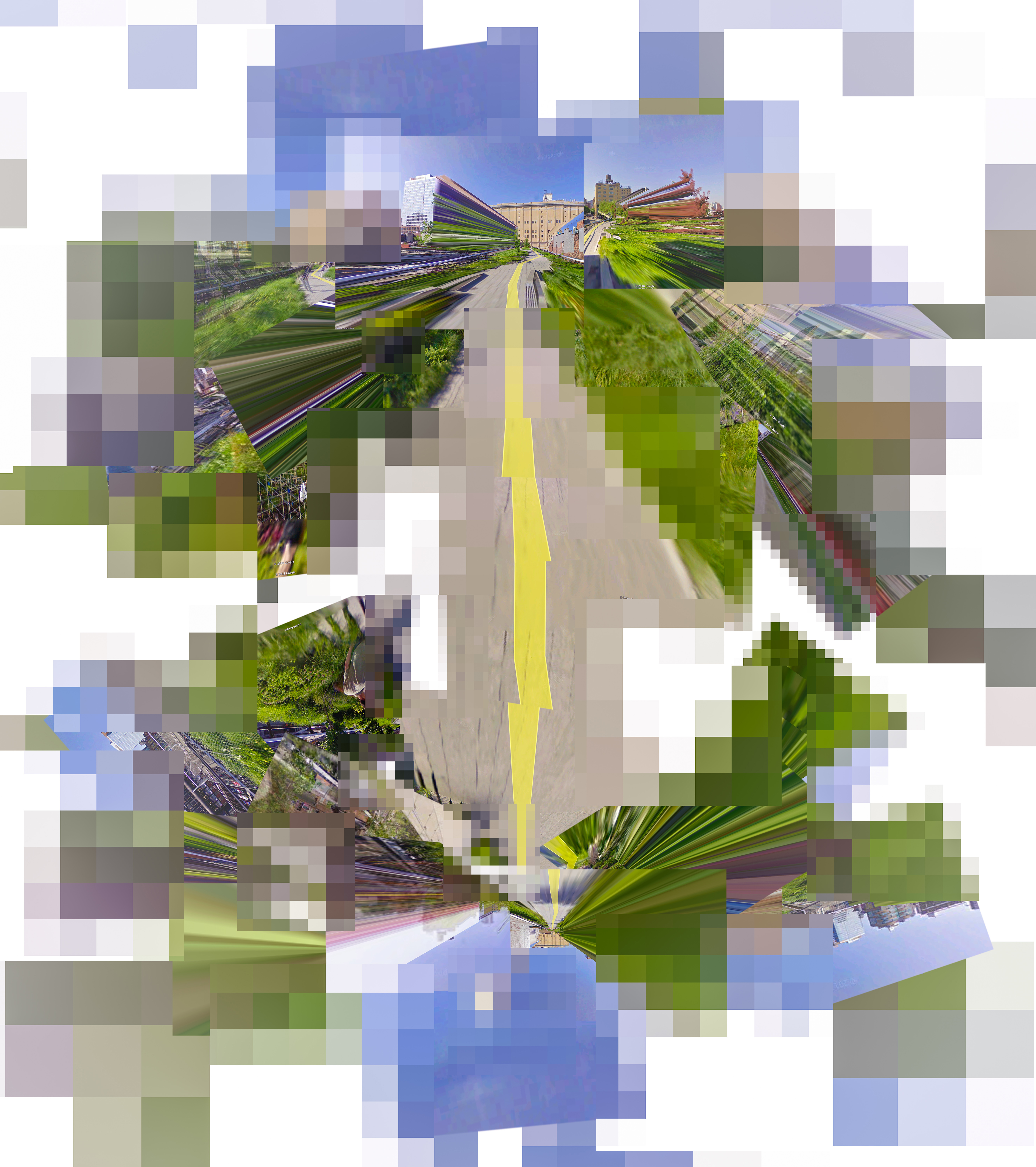 8 BIT AND UP – HIGHLINE PARK 2018 is a digital photo collage made from imagery found on Google Street View and assembled with Photoshop.