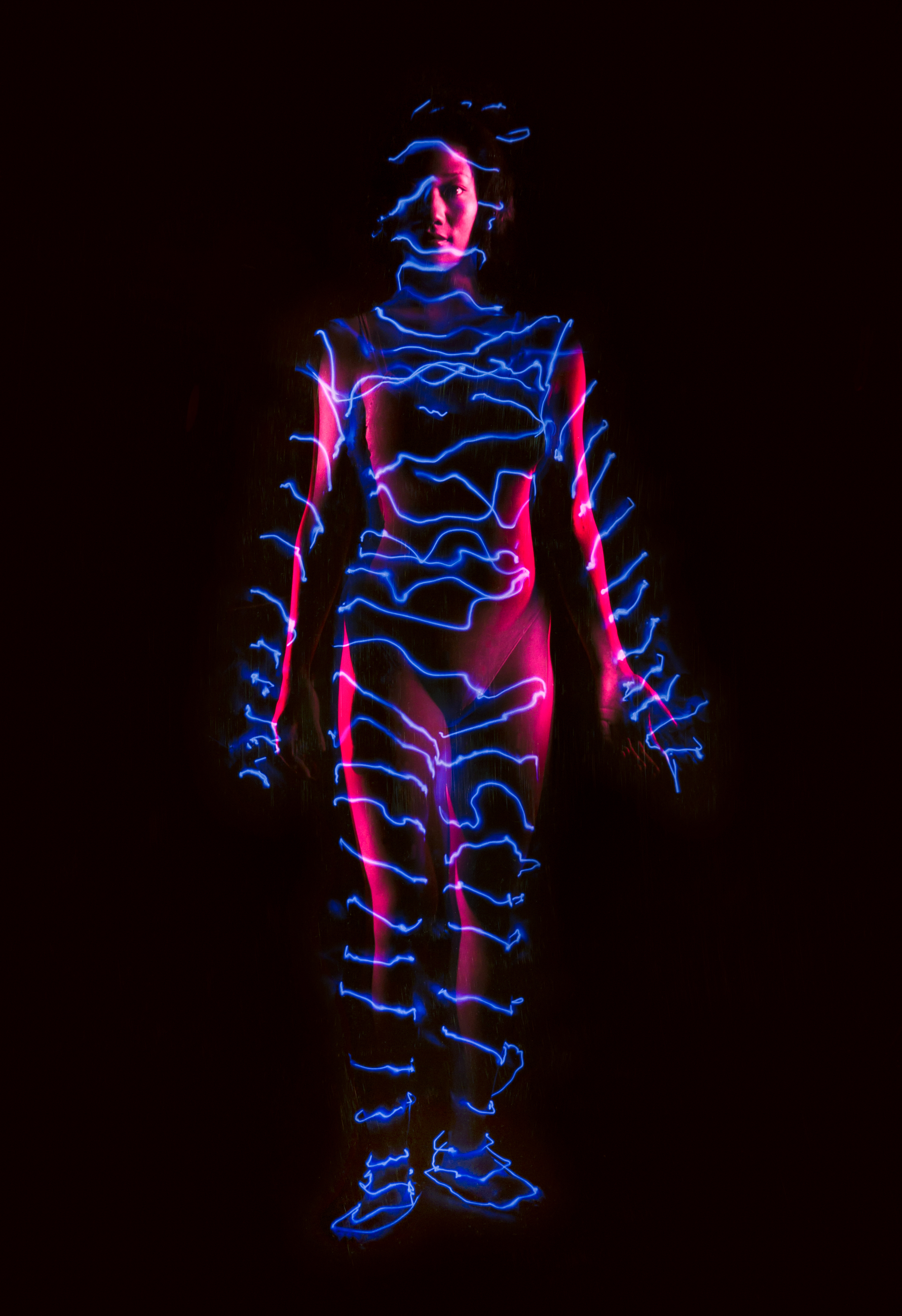 GLAMOUR CIBACHROME TWO 1993 is a multiple image Cibachrome print made from color transaparency film images using various techniques during shooting, including image projection and light painting, all in a land before Photoshop.  Created for Glamour Magazine in 1993.