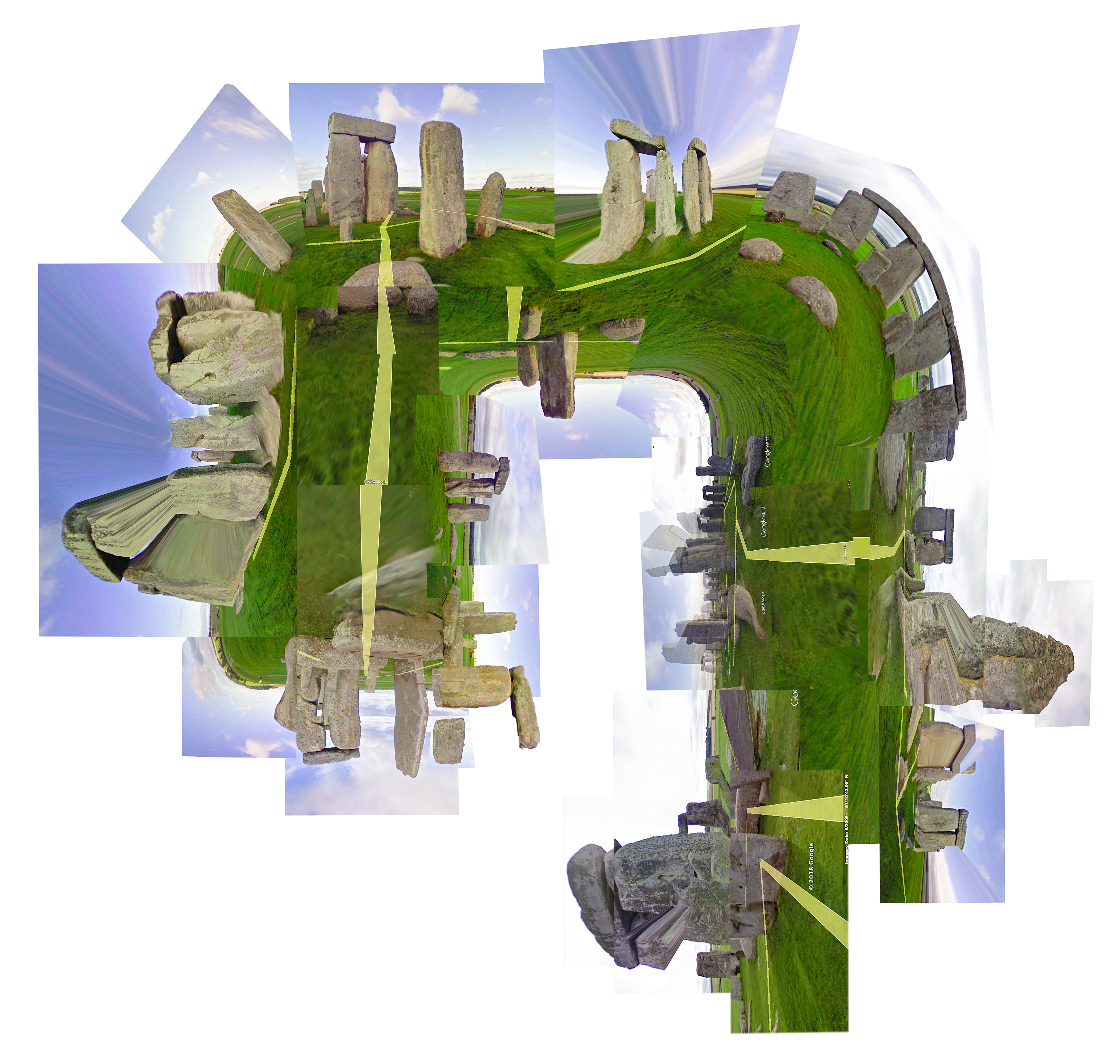 UNHENGED (work in progress) 2018 is a digital photo collage made from imagery found on Google Earth software in the vicinity of Stonehenge. Not sure where I’m going with this one…