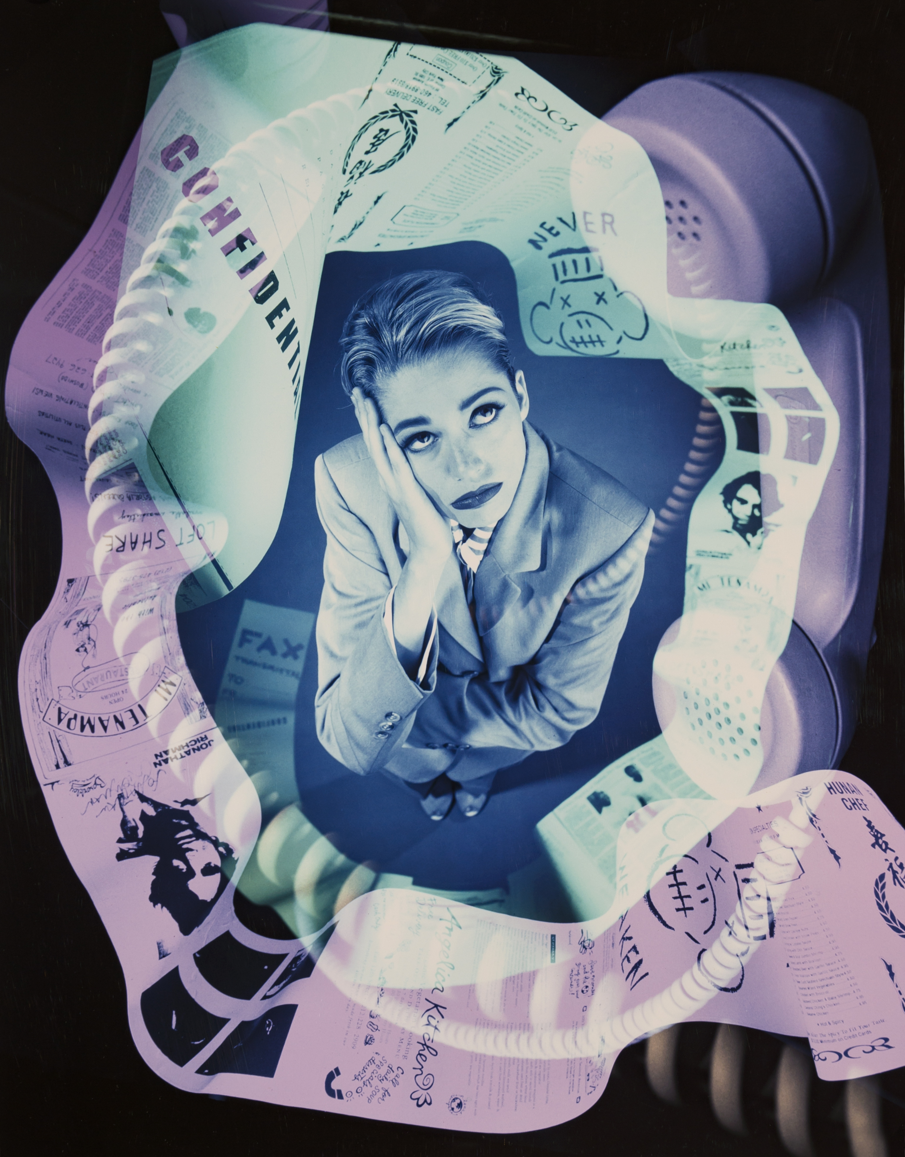 KNOW HOW 1993 is a multiple image Cibachrome print made from black & white transaparency film images. Created for Know How Magazine in 1993.