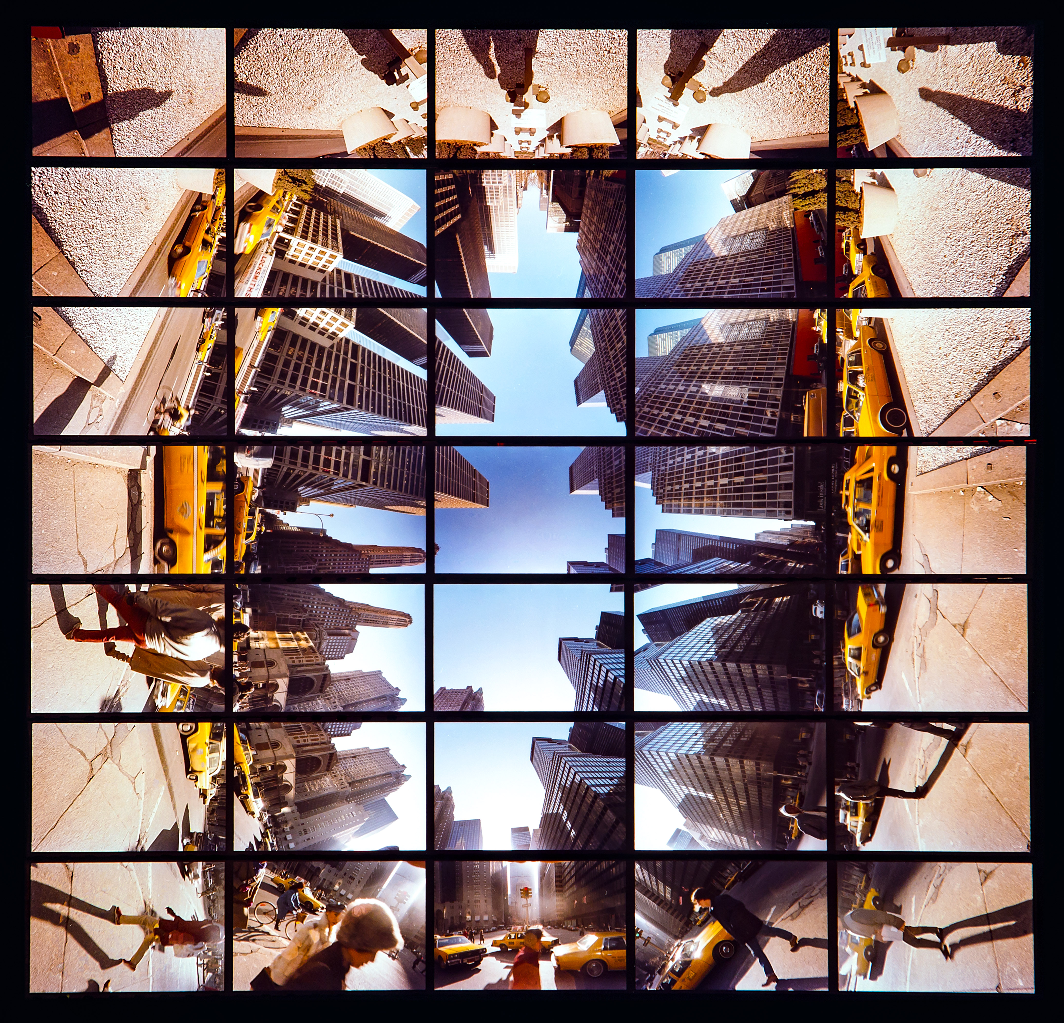 PARK AVENUE 1982 is an analog composite panoramic contact print on chromogenic paper, made from color negatives shot with an Olympus OM-1. For similar images see Early Collage.