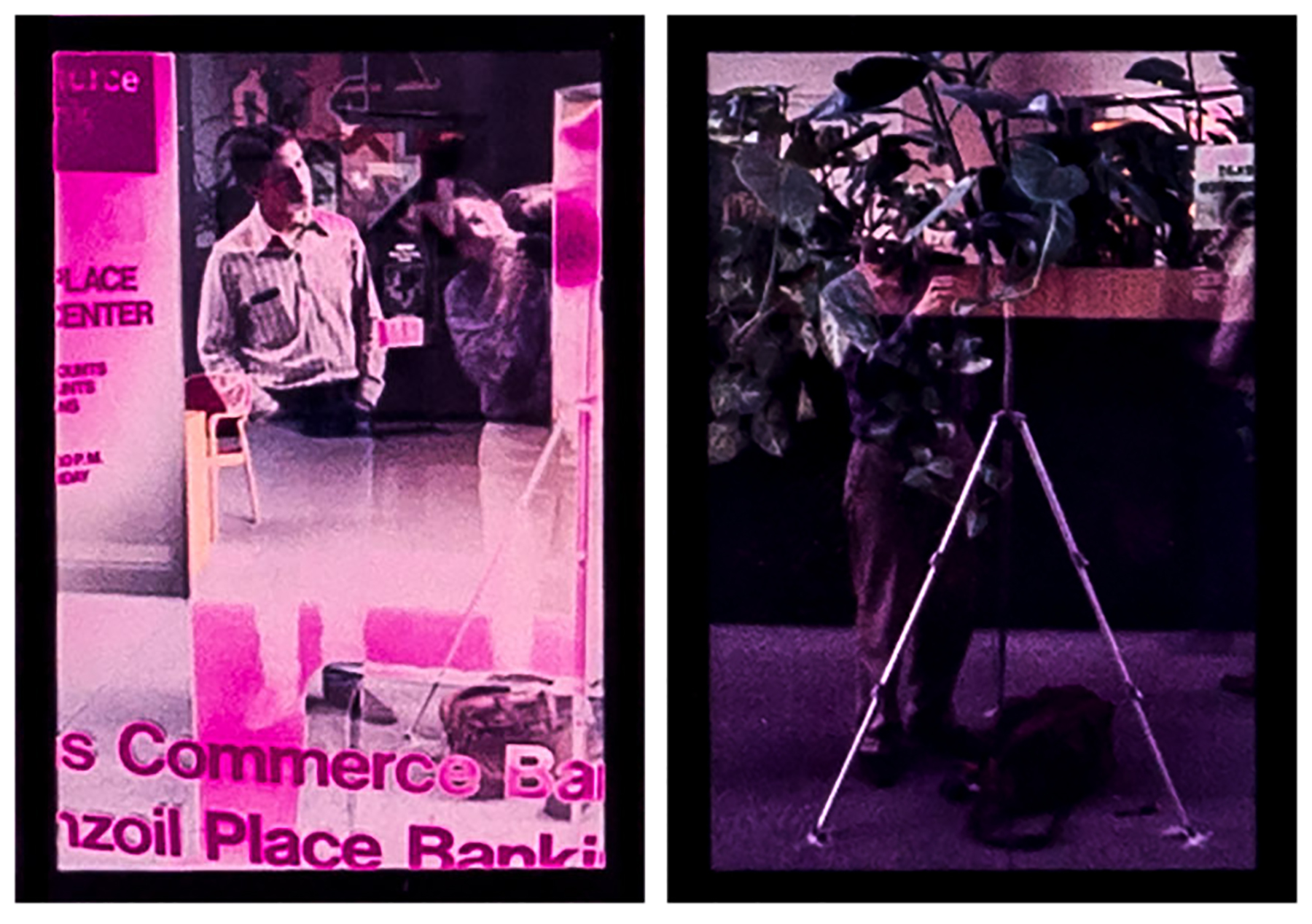 PENNZOIL 1983 detail are two frames showing reflection of artist at work along with his accomplice Steve Gay.