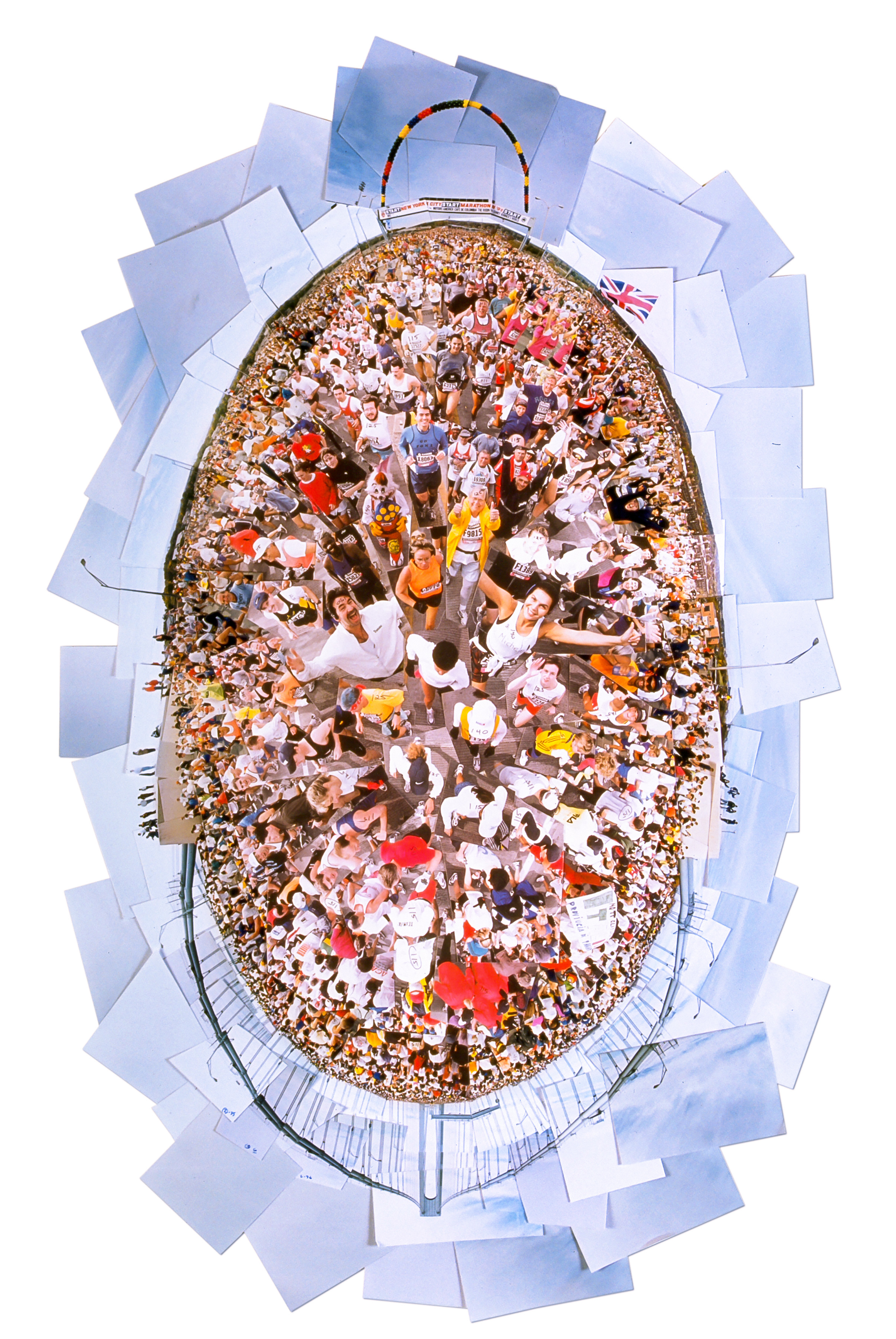 ESPN ZONE MARATHON SKETCH 2004 is an analog photo collage sketch photographed with color negative film and printed on 1-hour photo prints. It was created as a study for a permanent installation in ESPN ZONE / Disney Restaurant in Times Square 2004 (see below).