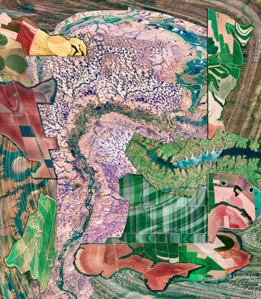 ‘Ekstasis’ is the 7th in a series of digital photo collages I’m working on this February. I’m revisiting my Google Hack series, trying some new things, and finishing off some older projects. These collages are made from dozens/hundreds of screenshots of the Google Earth app, at various locations around the globe. This is an Alaska, Iowa and Turkey mash-up.