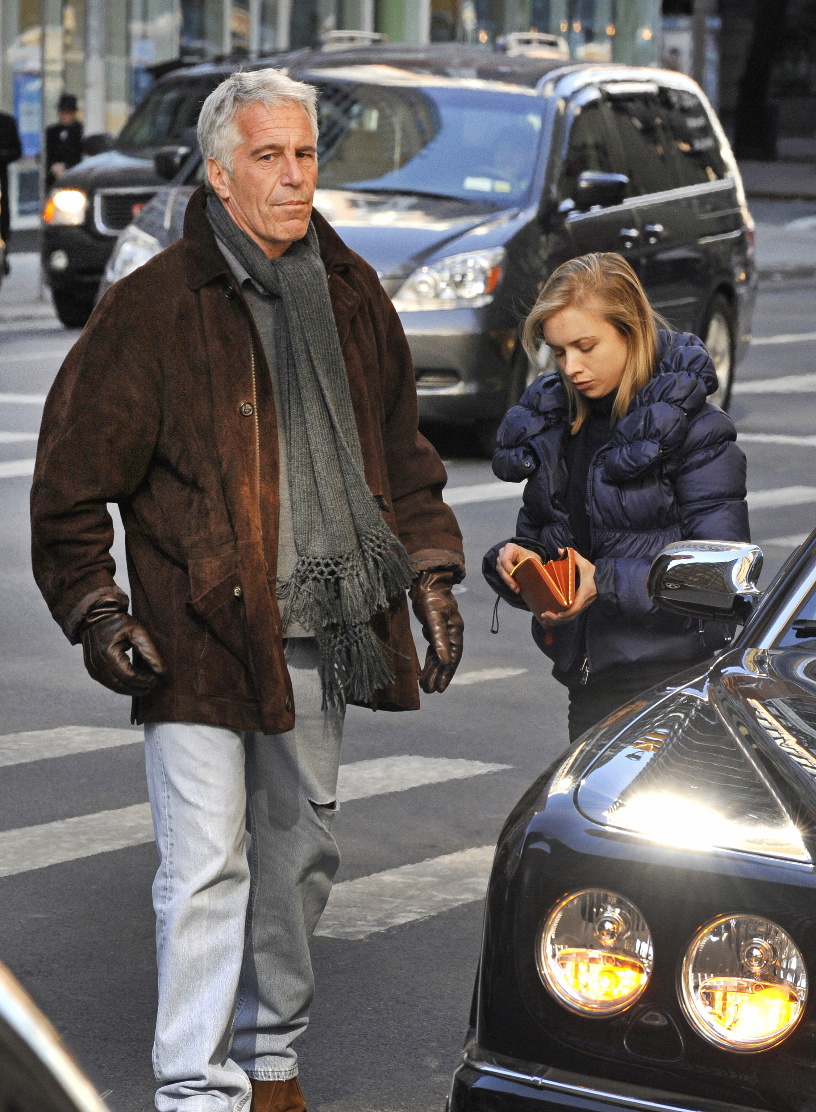 Jeffrey Epstein (left) with young woman (Sue Hamblin) alleged to be his assistant, on the corner of East 38th Street and Second Ave, NYC