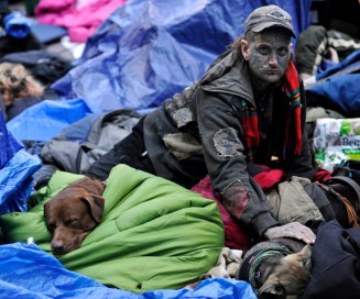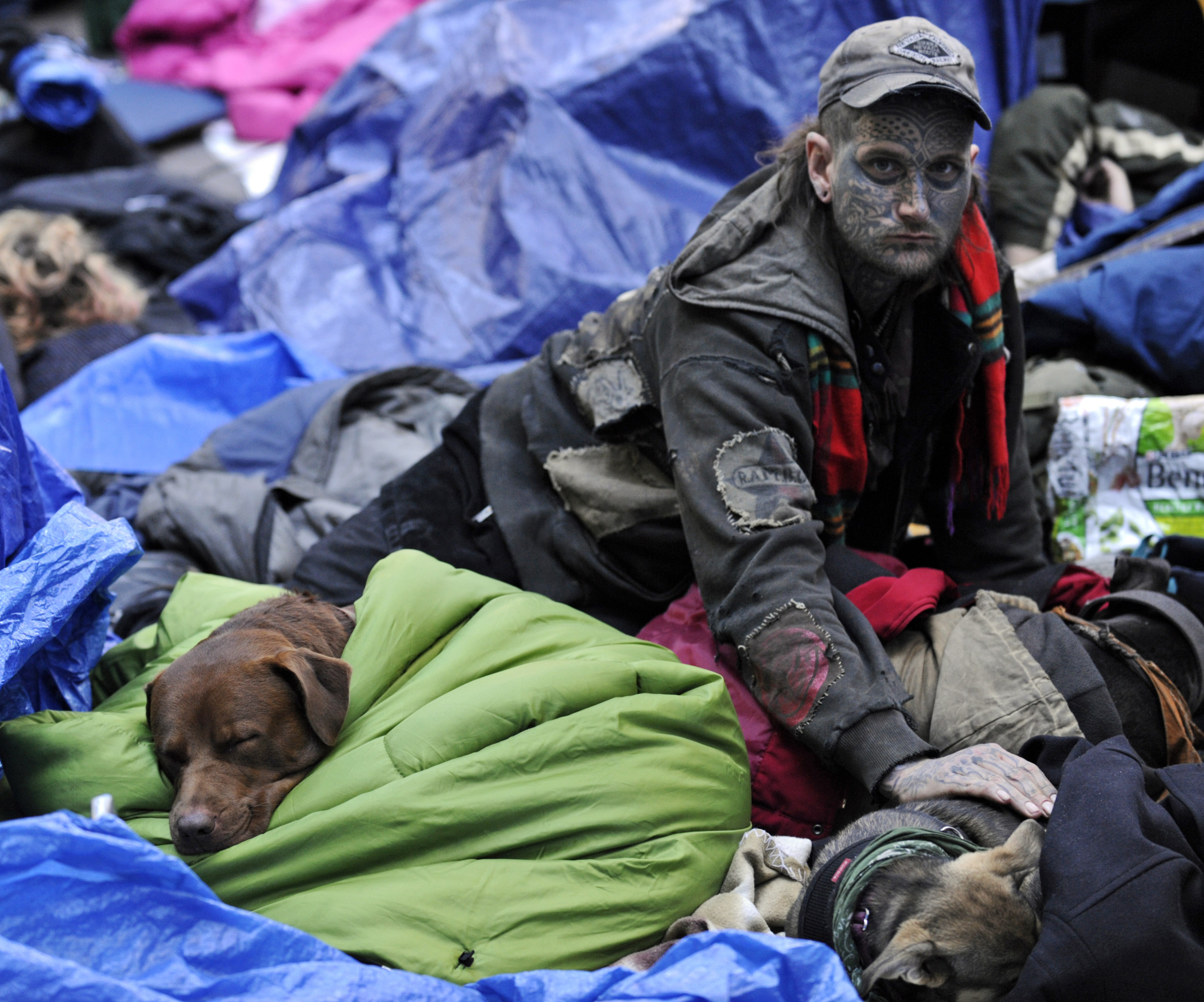 Previous ImageNext Image OCCUPY WALL STREET Protester with dogs in sleeping area in Zucotti Park during the Occupy Wall Street demonstrations, NYC Share this: Click to share on X (Opens in new window) X Click to share on Facebook (Opens in new window) Facebook Click to share on Pinterest (Opens in new window) Pinterest Click to share on LinkedIn (Opens in new window) LinkedIn
