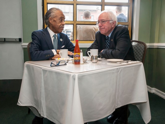 Reverend Al Sharpton having breakfast with Presidential candidate Bernie Sanders in Sylvia’s Restaurant in Harlem, NYC.